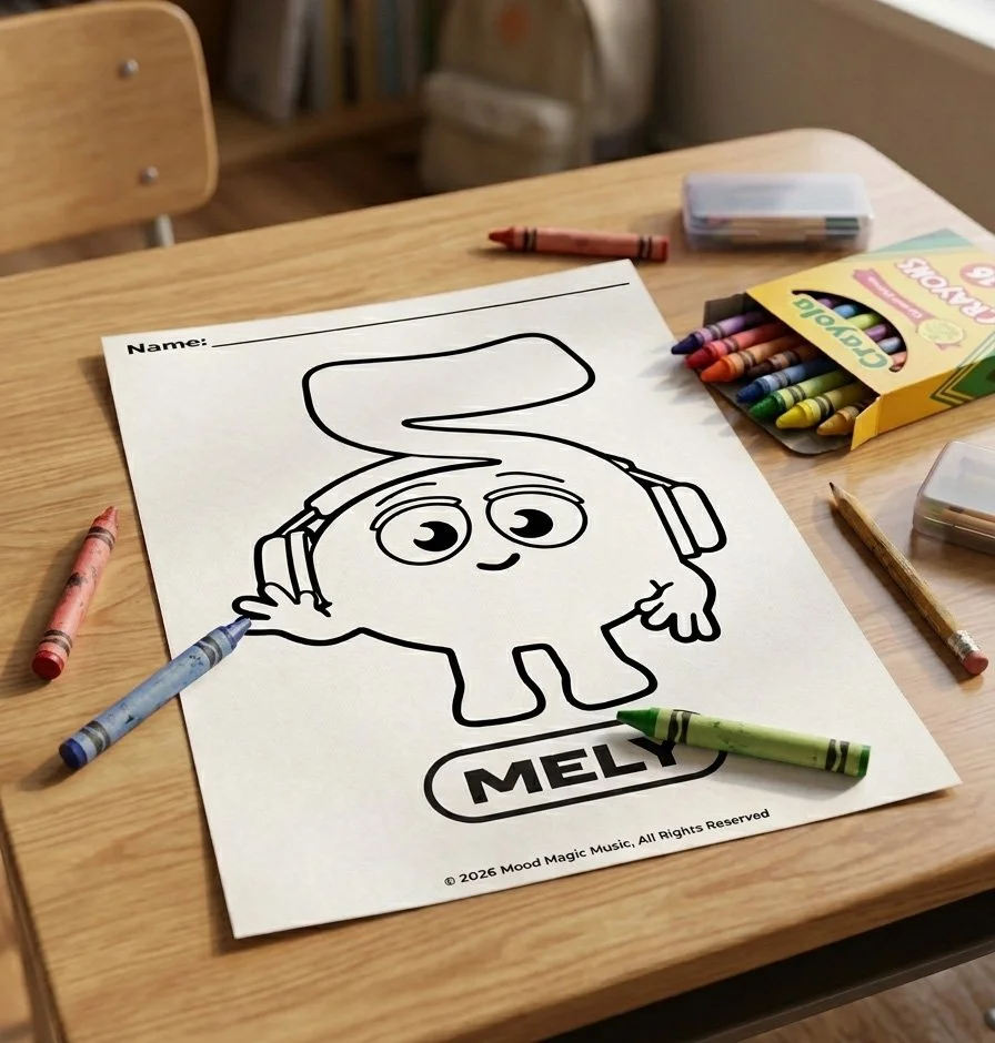 They work as printables or as digital coloring pages on a tablet. Print a stack for your calm-down corner, or load the PDFs onto student tablets for a screen-based activity that actually feels calm. Use them as a warm-up before a Mood Magic listening session, hand them out during indoor recess, or keep a few in your sub folder. They pair nicely with any Mood Magic video playing in the background, but they work just fine on their own, too.